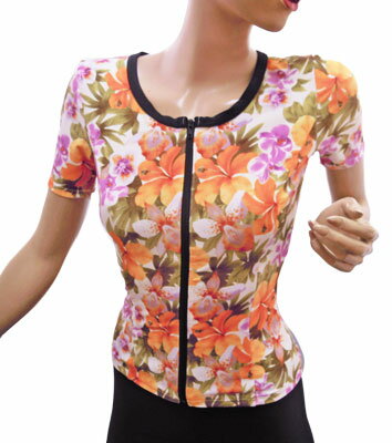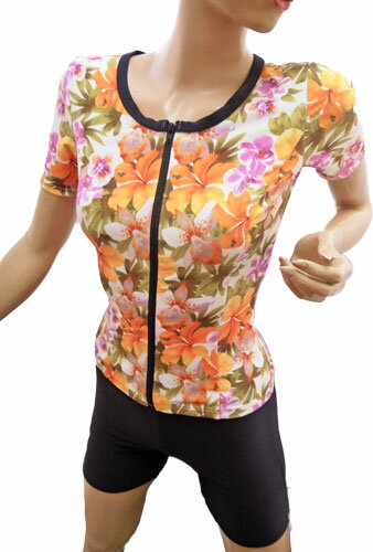 半袖T&Bセパレート水着*プラチナビーチ オレンジ[レディス 女性用 婦人水着 フィットネス水着 リゾート スイミング 水中ウォーキング ノーマル 柄物 プリント 日本製]17500