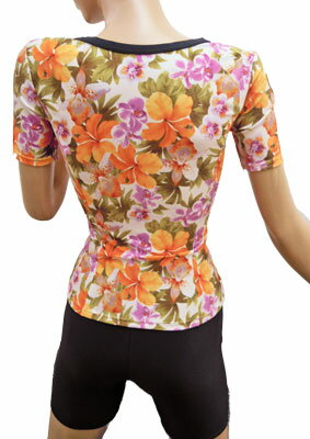 おしゃれな半袖セパレート水着ができました!!\(^O^)/人気のハイビスカス柄!とても素敵に出来上がりました♪