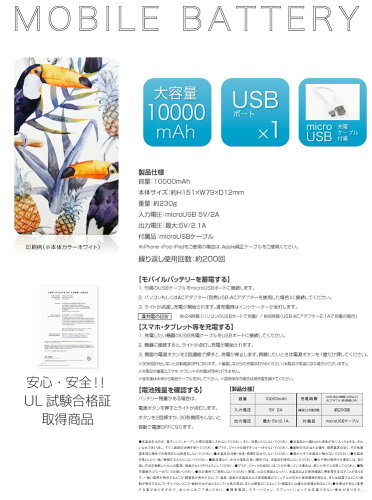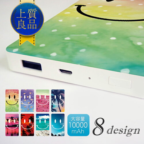 iPhone8 対応!モバイルバッテリー PSE適合 10000mAh 大容量 薄型 Mobile Battery iQOS iPhone GALAXY XPERIA AQUOS iPad 3DS PSP スマートフォン タブレット 対応 携帯 充電器【アロハ スマイル デザイン】